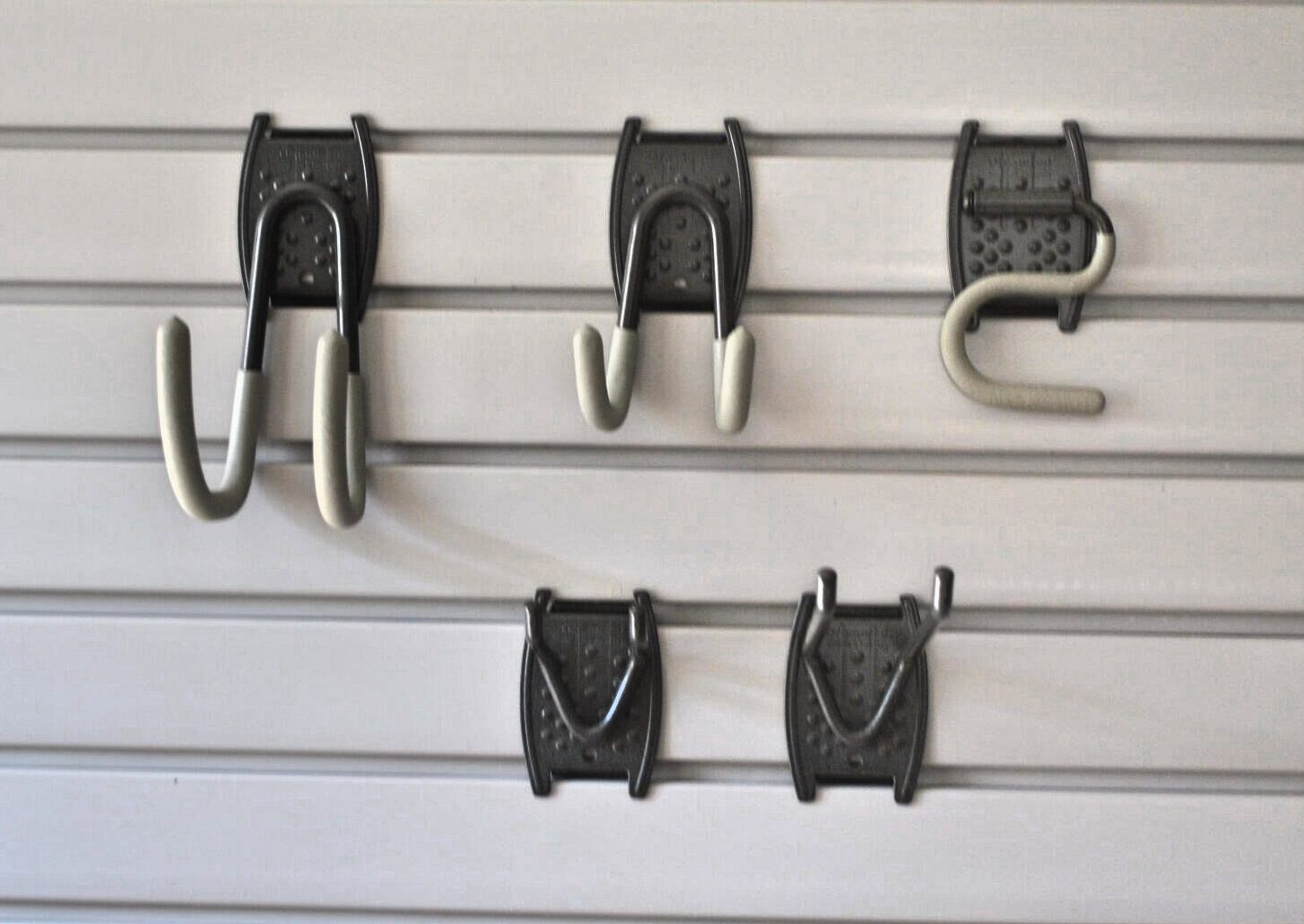 The Schulte Organized Living Hook Kit features 5 Hooks to store and organize lawn, garden and garage tools on standard 3″ on center slatwall panels, the Wall Grid, or directly on the wall (hardware not included).