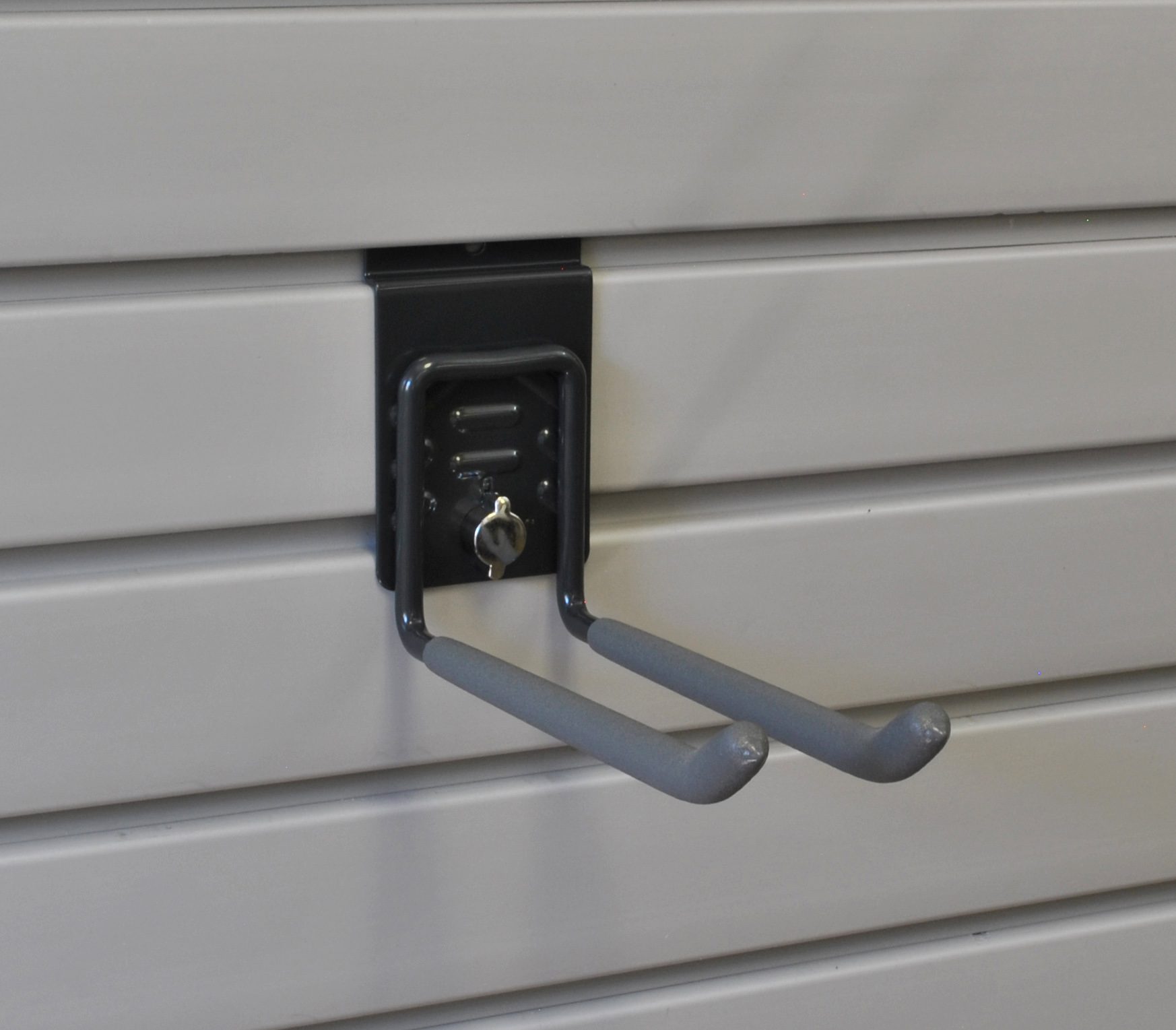 Graphite colored steel hook has rubberized coatings to protect your tools and features an integrated lock to keep the hook securely fastened to your wall panels.