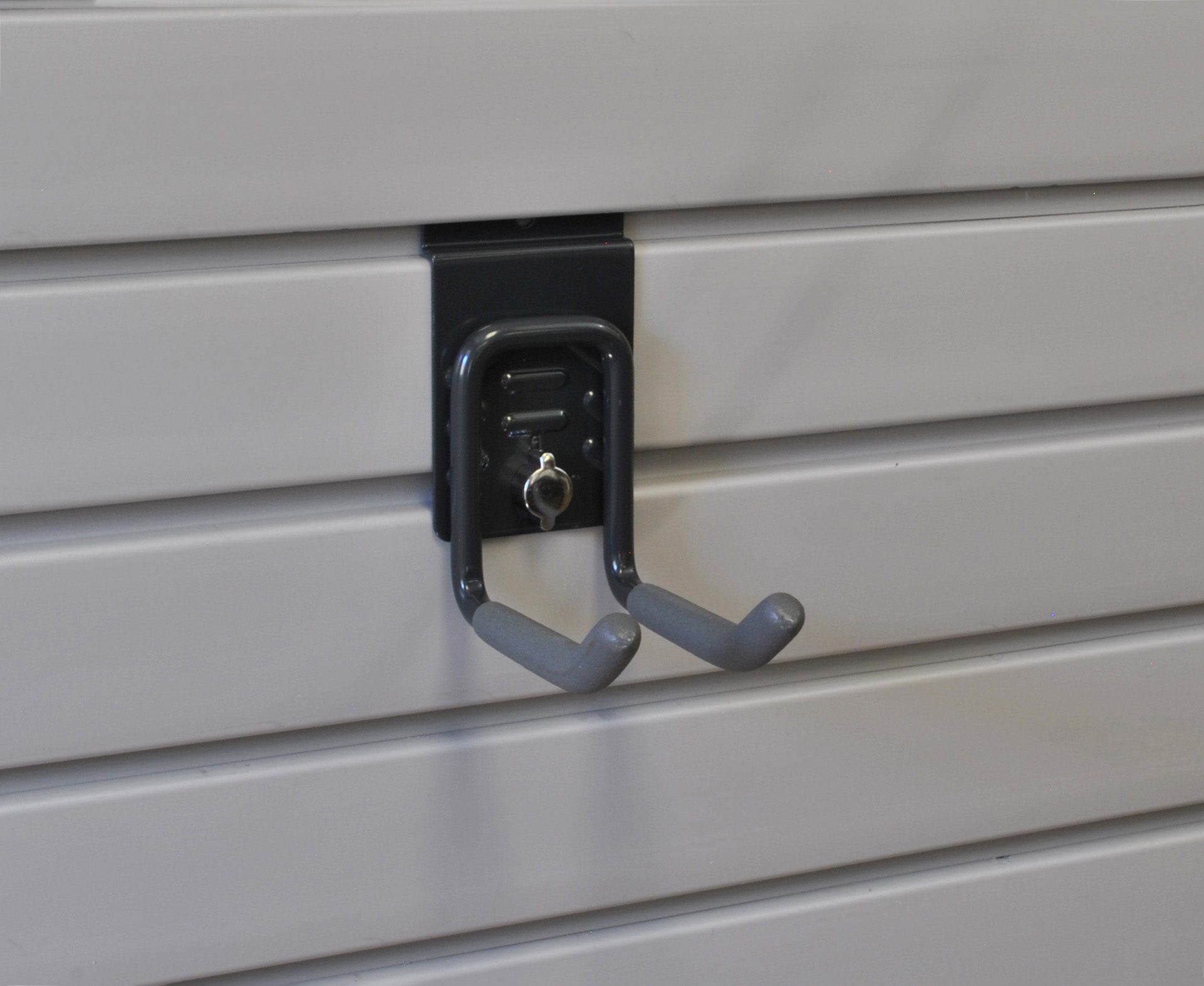 Graphite colored steel has rubberized hooks to protect your tools. Features an integrated lock to keep hook securely fastened to your wall panels.